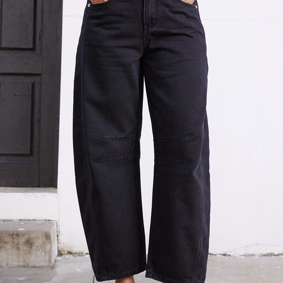 Características de ajuste y estilo: describimos en detalle el ajuste de los jeans; este estilo es de tiro medio, relajado, suelto, de pierna ancha y longitud hasta el tobillo. Destacamos que este estilo es un poco grande, por lo que recomendamos elegir una talla más pequeña.