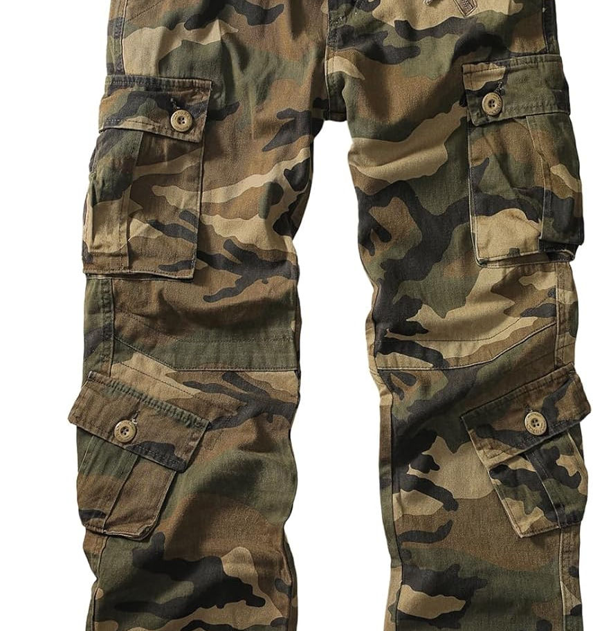 Pantalones tipo cargo de camuflaje unicolor para hombre, de estilo informal con múltiples bolsillos para mayor comodidad. No incluyen el cinturón de la imagen.