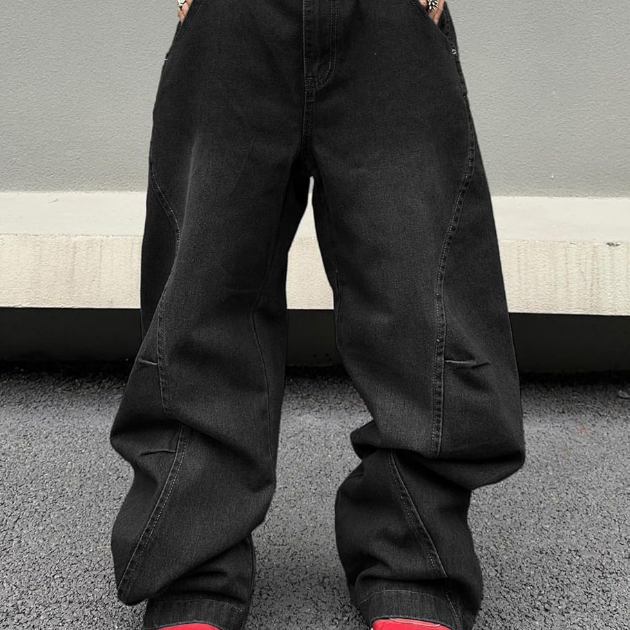 Jeans holgados inspirados en el hip hop Y2K con suturas irregulares: los jeans holgados para hombre de DFGIGT se inspiran en la moda hip hop Y2K y cuentan con suturas irregulares, lo que añade un elemento único y vanguardista al diseño.