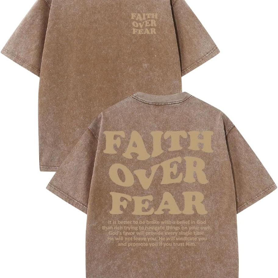 Diseño: la camiseta de gran tamaño para hombre está hecha de 100% algodón, suave y transpirable. Se puede lavar toneladas de veces y no se encoge. La exclusiva camiseta gráfica de fe cristiana sobre el miedo te ayuda a destacar entre cualquier multitud. Camisa de gran tamaño, camisetas de manga corta con cuello redondo, camisetas unisex