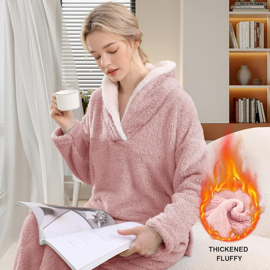 Pijama mullido para mujer, conjunto de pijama suave y cómodo de forro polar, pa