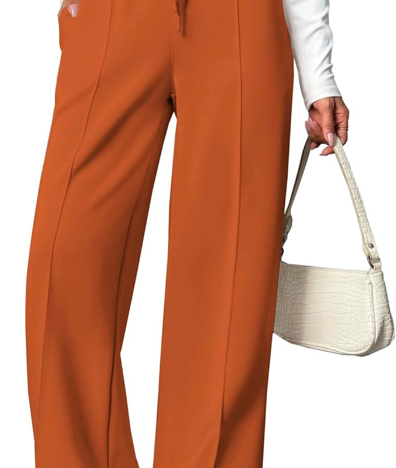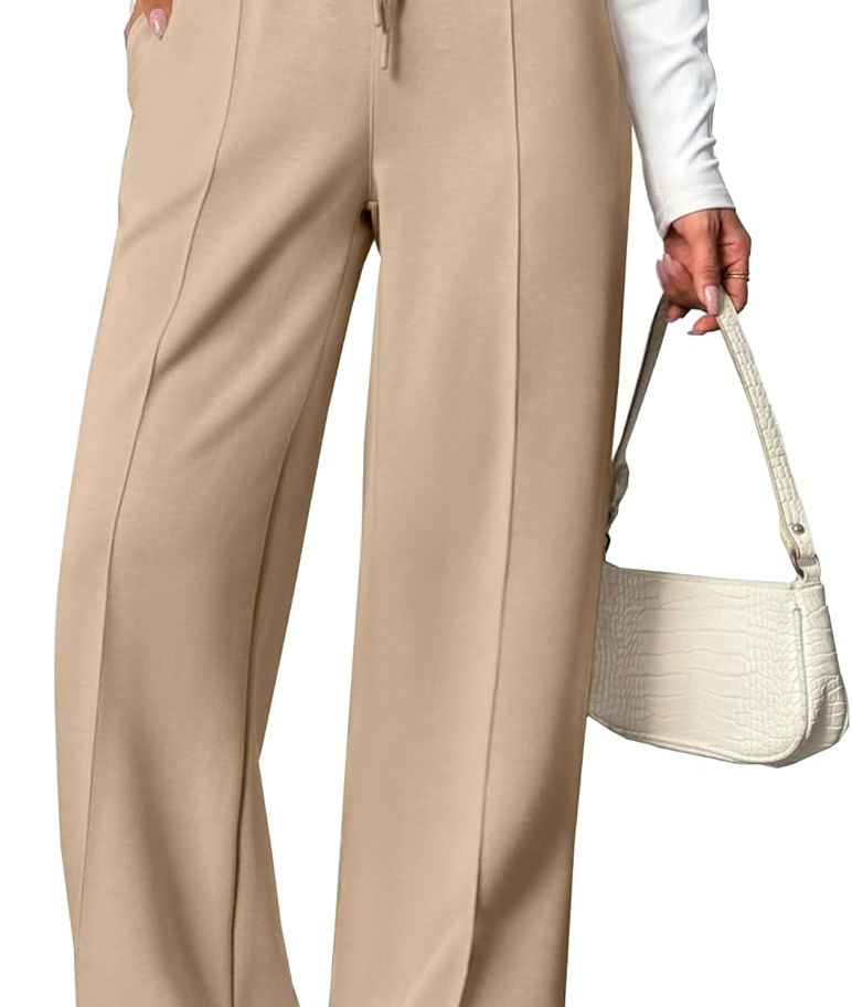 PINSPARK Pantalones deportivos de pierna ancha para mujer, cintura alta, holgad