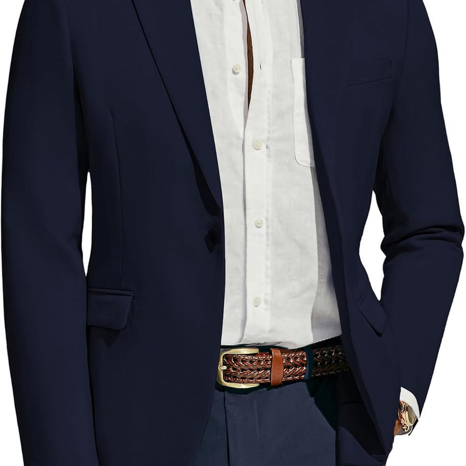 Características: solapa con muesca, 1 bolsillo izquierdo real en el pecho, 2 bolsillos de parche reales en la parte delantera, 2 bolsillos interiores reales, diseño de botón, forro fresco, ya sea en verano u otras estaciones, te mantendrá cómodo.