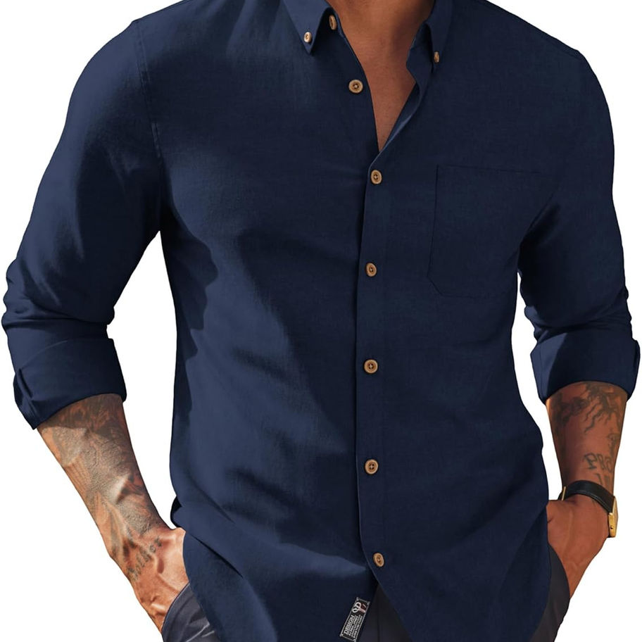 Tela Oxford de algodón: hecha de tela de mezcla de algodón que es suave, ligera, transpirable y duradera, esta camisa Oxford para hombre garantiza una comodidad duradera y durabilidad mientras mantiene un aspecto nítido y pulido durante todo el día