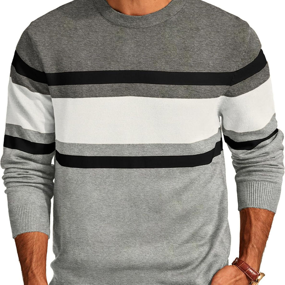 Ocasiones: este elegante suéter de cuello redondo a rayas es ideal para el uso diario casual, ropa de calle, ropa urband, activo, citas, fiesta, club, sesión de fotos, trabajo de oficina, un gran regalo para ti, tu marido, novio, hijo y amigos