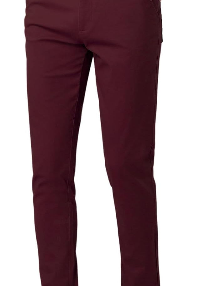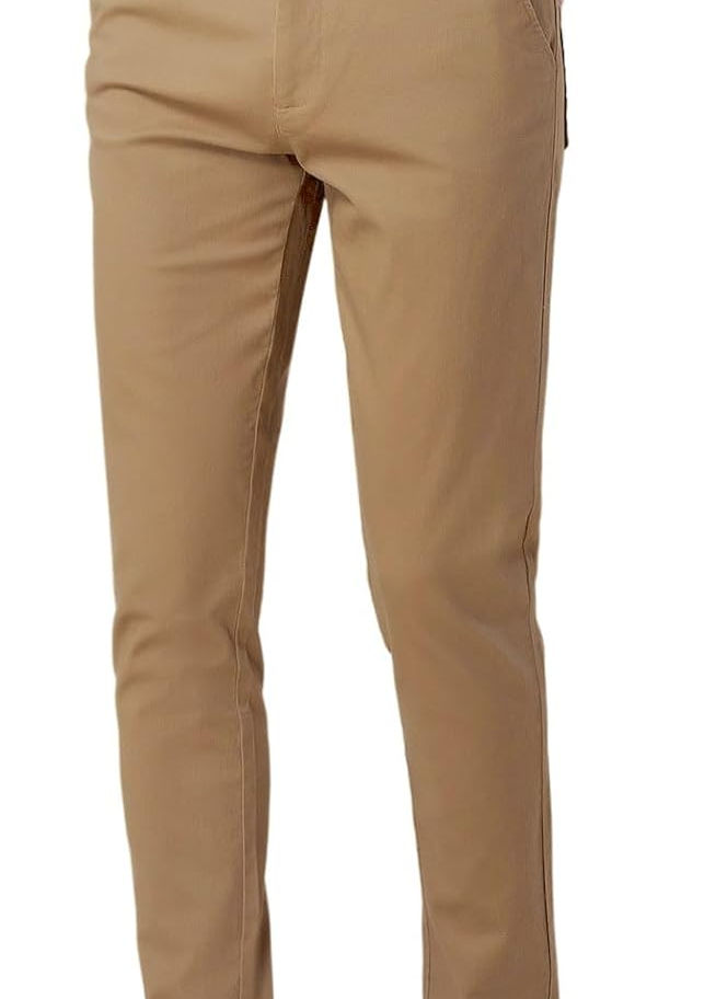 Plaid&Plain - Pantalones de color caqui elásticos y ajustados para hombre