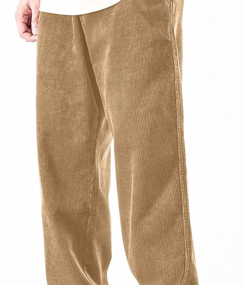 PLEPAN Pantalones de pana para hombre, holgados, pierna ancha, casual, cintura