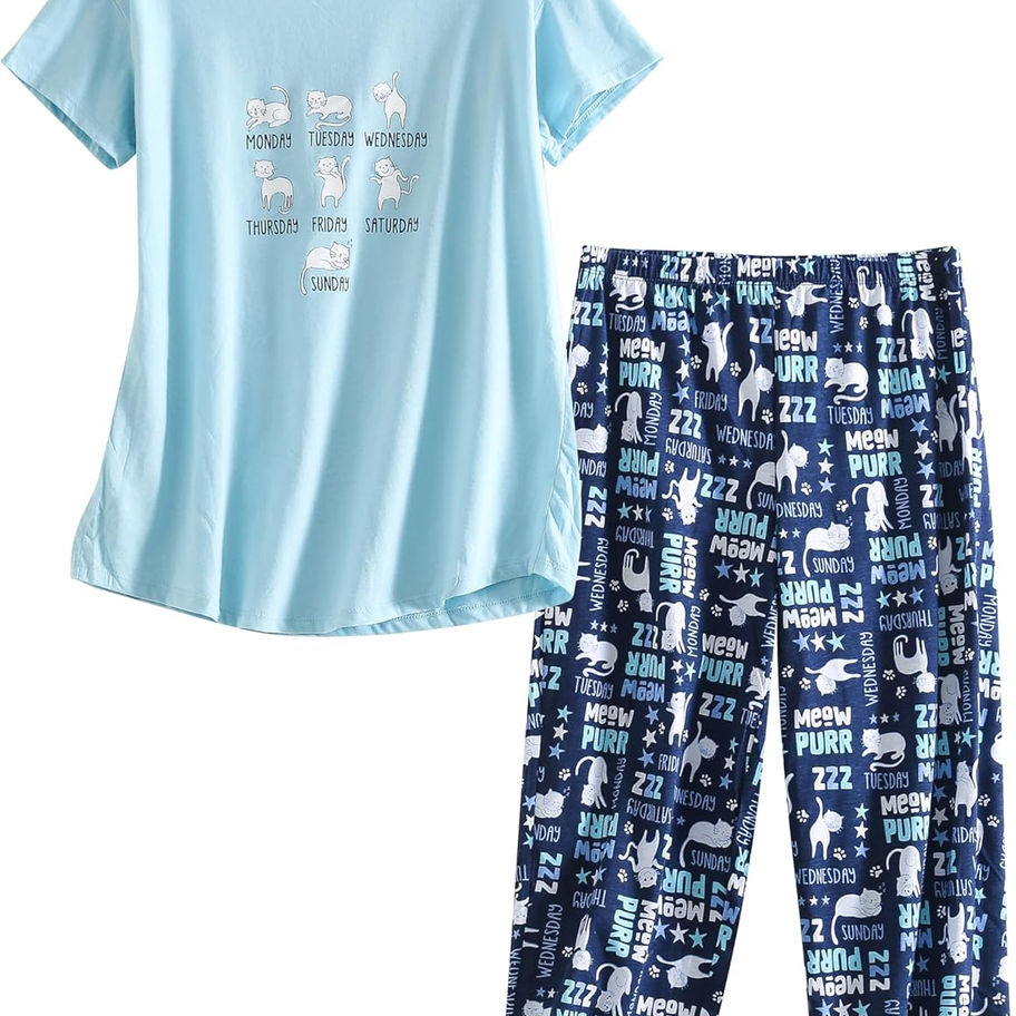 PNAEONG Conjunto de pijama para mujer, ropa de dormir con pantalones capri, con