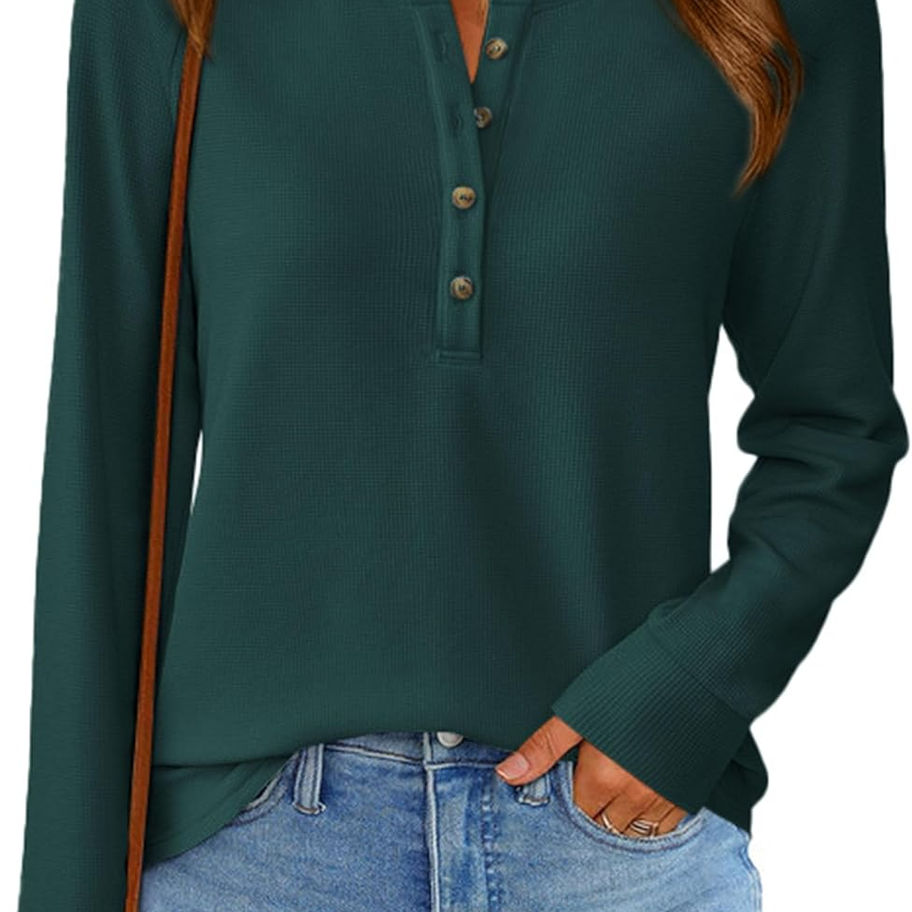PRETTYGARDEN Camisas de manga larga para mujer, de punto gofre, para otoño, cas