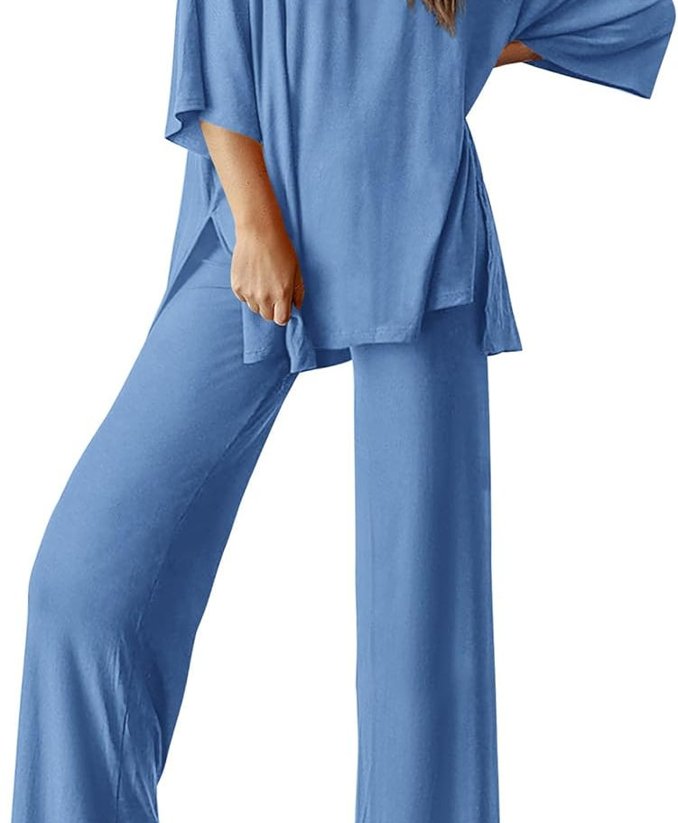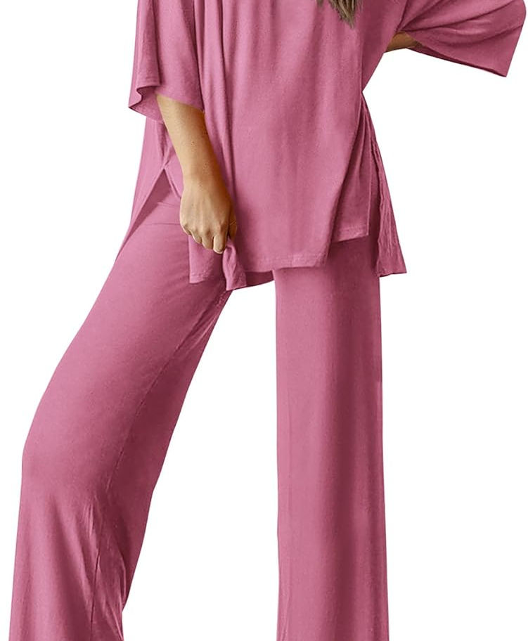 Diseño elegante: conjuntos de 2 piezas para mujer; conjuntos de estar por casa para mujer; camisetas de manga corta para mujer; pantalones de pierna ancha para mujer; conjuntos deportivos para mujer; Conjuntos de buzo deportivo para mujer; conjuntos a juego para mujer; conjuntos de pijama para mujer; conjuntos de ropa de estar por casa para mujer; ropa de verano para mujer; suéter con dobladillo con abertura; pantalones largos con bolsillos; conjuntos de punto para mujer; conjuntos de pantalones para mujer.