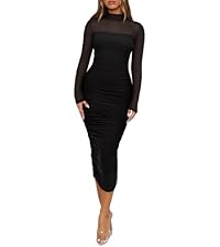 Fall Dresses for Women 2025: This mesh Midi dress is slim cut ruched design that shows the hourglass body curves. Holds the curves in and shows off the booty! Classy and sleek