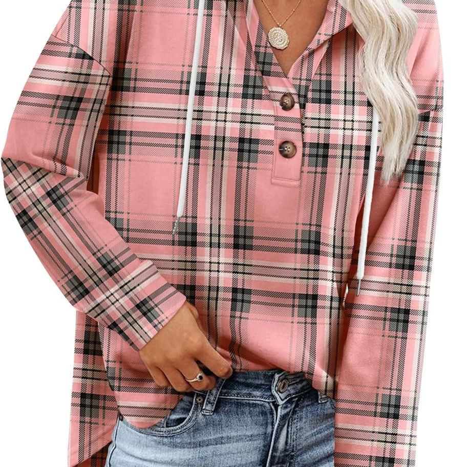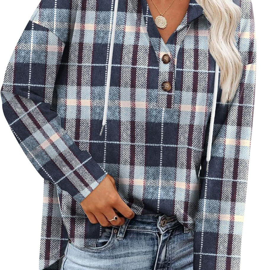 RUMIA Camisetas para mujer, cuello en V, con botones, sudadera de manga larga,