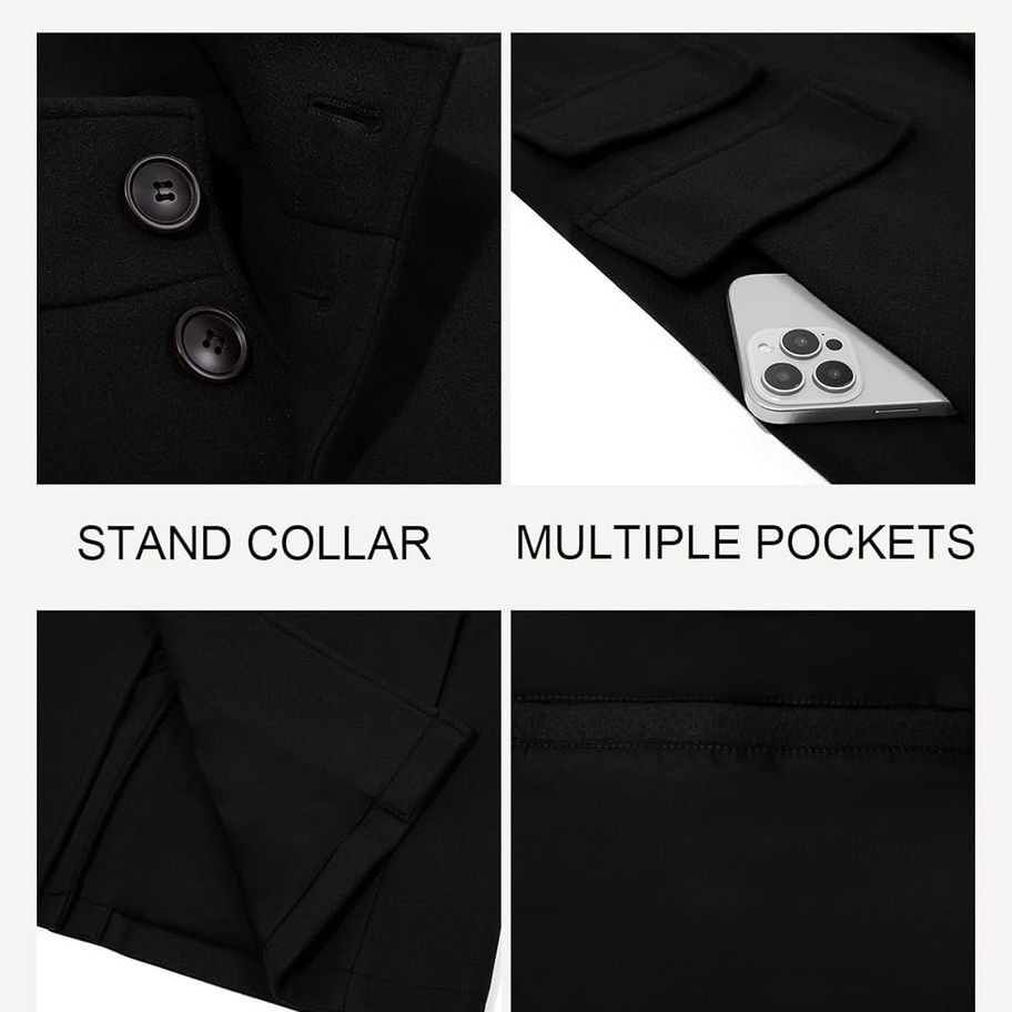 Runcati Abrigos de guisantes para hombre, cuello alto, casual, ajustado, gabard