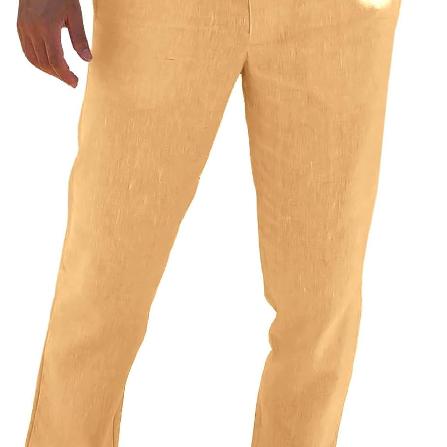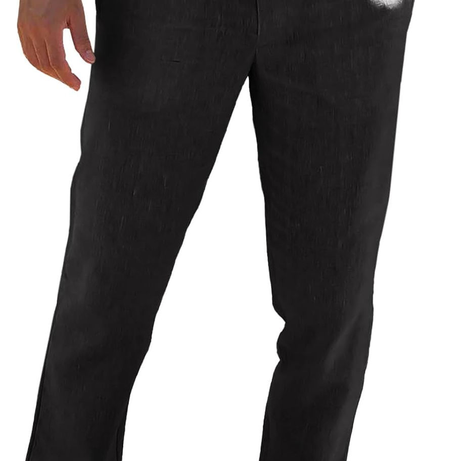 Runcati Pantalones casuales para hombre, cintura elástica, de lino, ligeros, de