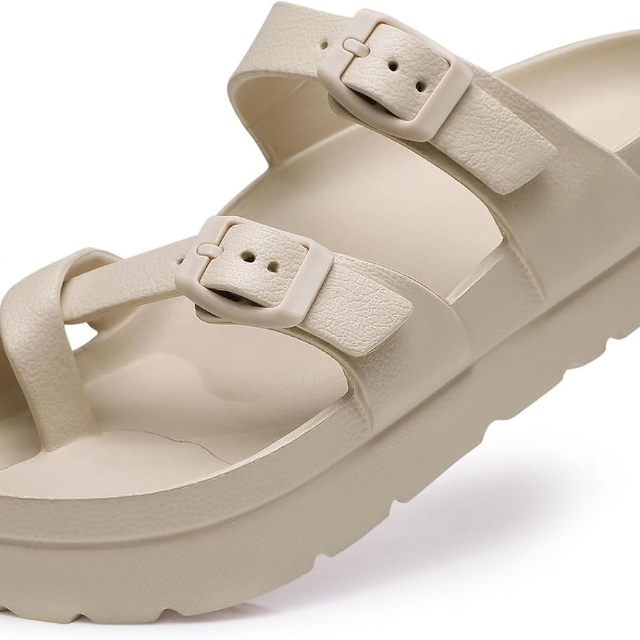Cómodo soporte de arco: estas sandalias gruesas son extremadamente cómodas, gracias a su suave plantilla de pantuflas y un buen soporte para el arco. Con su diseño de talonera profunda, puedes esperar un ajuste rápido y ceñido que garantice la máxima comodidad incluso tras un uso prolongado.