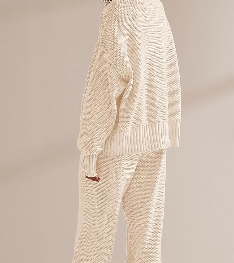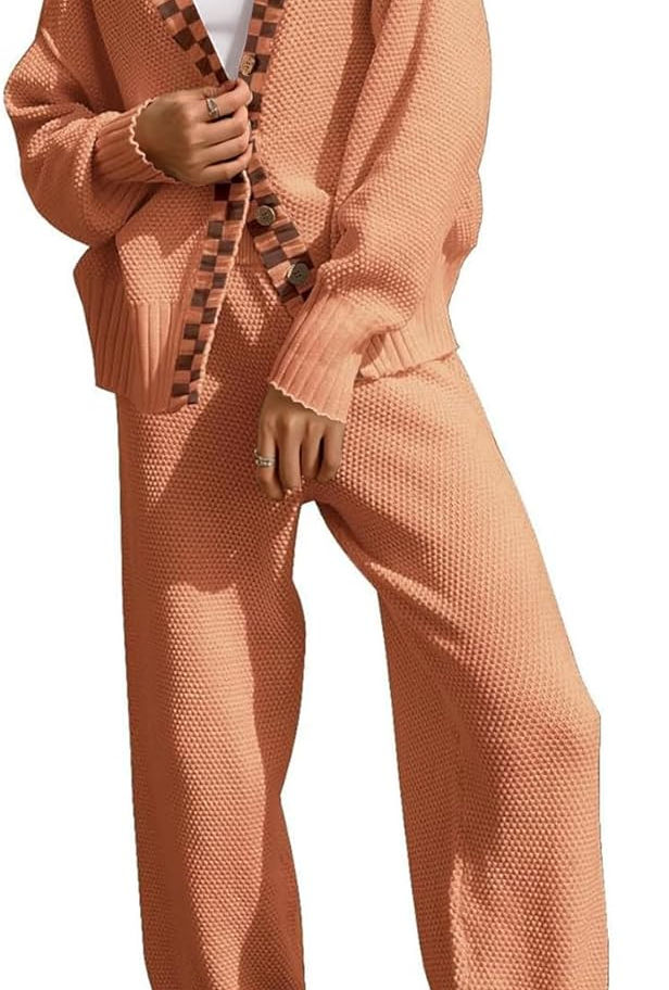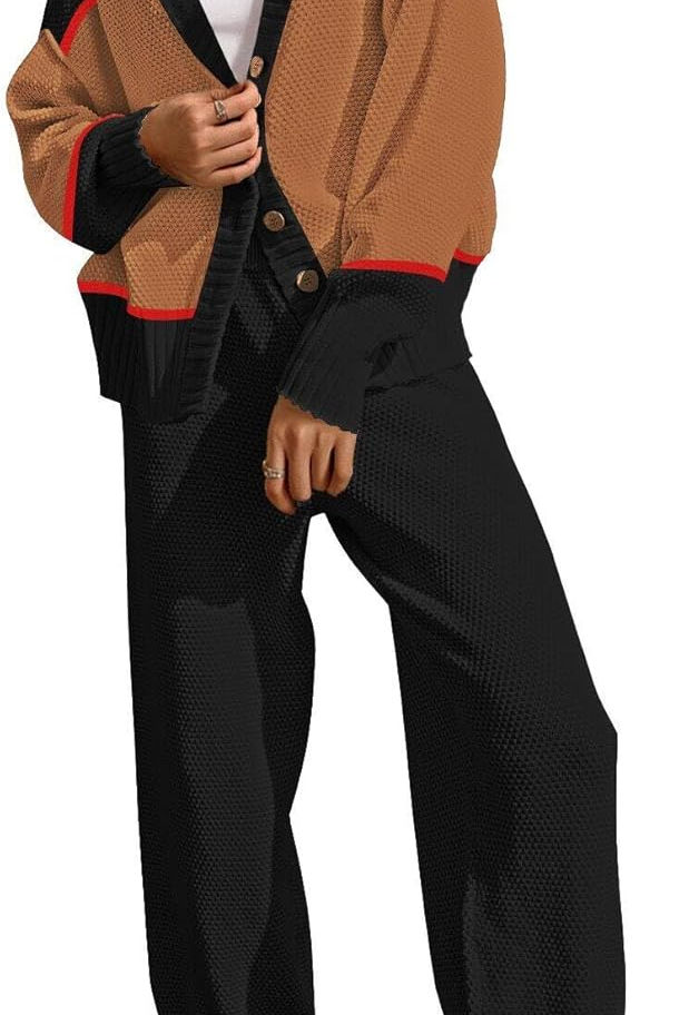 Conjunto de suéter de 2 piezas para mujer, contenido de fibra, 50% viscosa, 30% nailon y 20% algodón. Cárdigan de manga larga con botones a juego, pantalones largos holgados y holgados que se pueden llevar como un conjunto o como separado