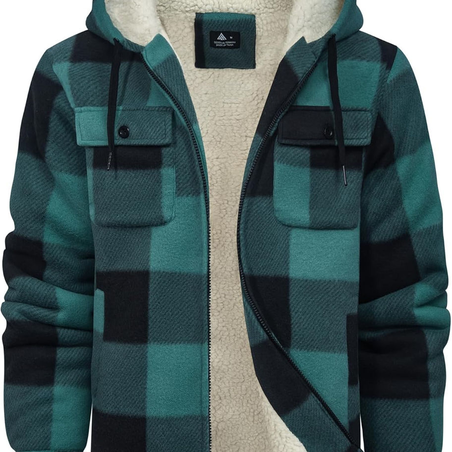 SCODI - Chaqueta tipo camisa de franela de vellón para hombre, con forro sherpa