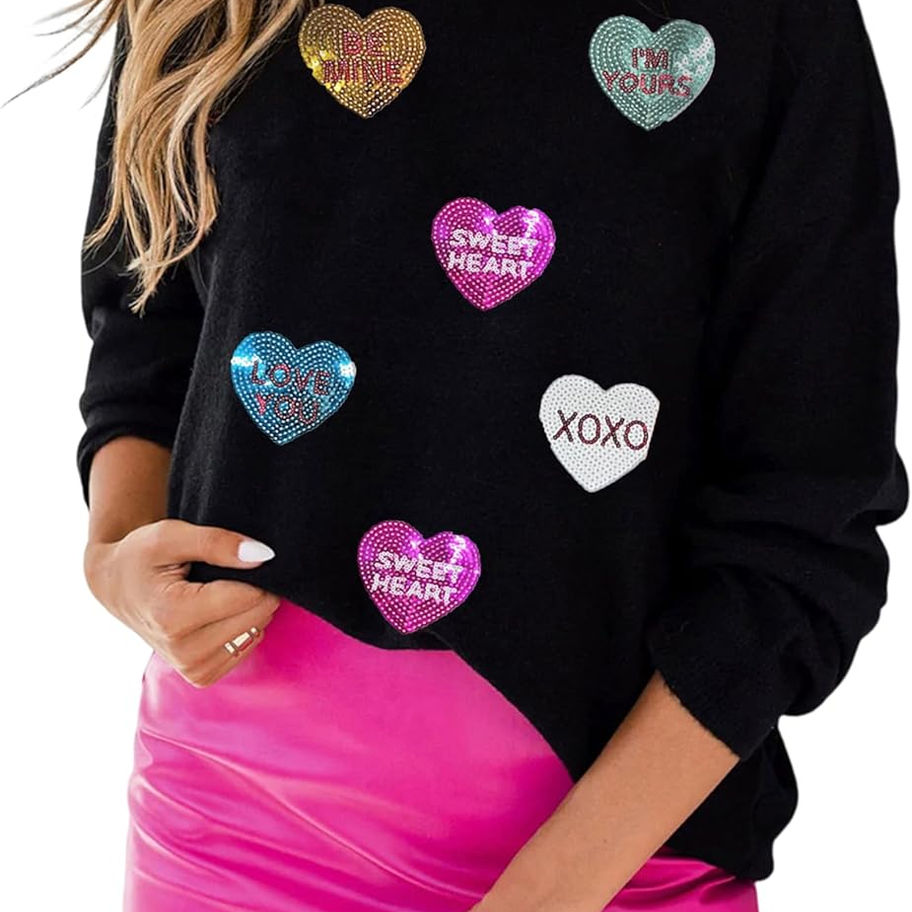 SELINK Suéter de San Valentín para mujer, cuello redondo, estampado de corazón