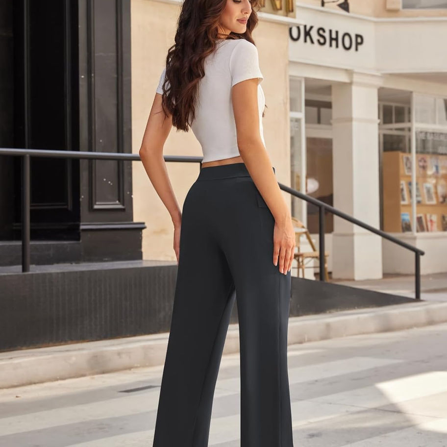 Adaptable a muchas ocasiones: Adecuado como pantalones de vestir para el trabajo, pero lo suficientemente cómodo para reuniones, citas y hogar. El elegante diseño de pierna ancha hace que estos pantalones de trabajo casuales para mujer sean fáciles de navegar en todo tipo de ocasiones.