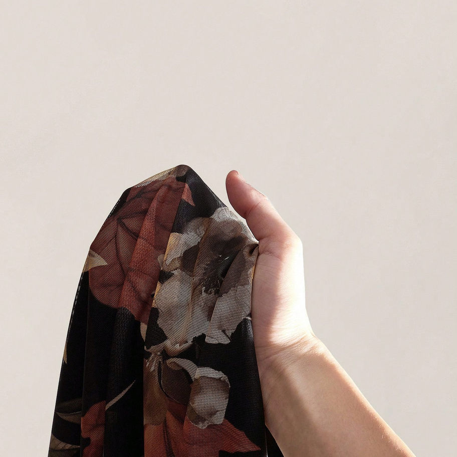 SHEIN ICON Vestido con sobrecapa de malla con estampado de hojas de arce de cue