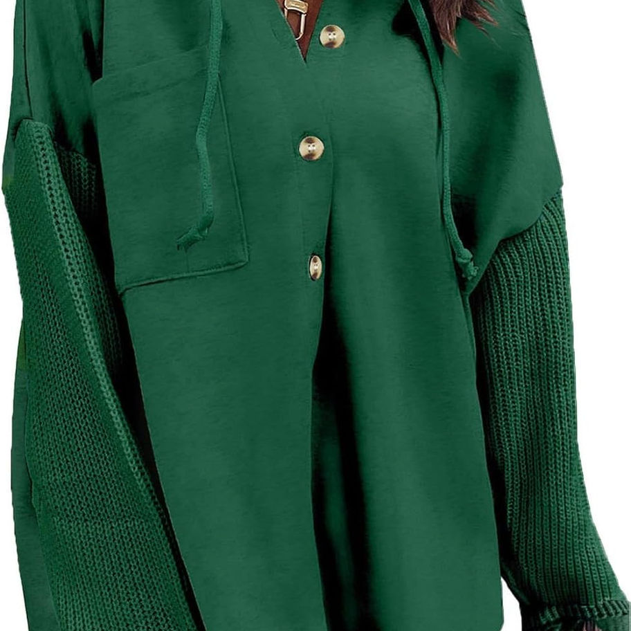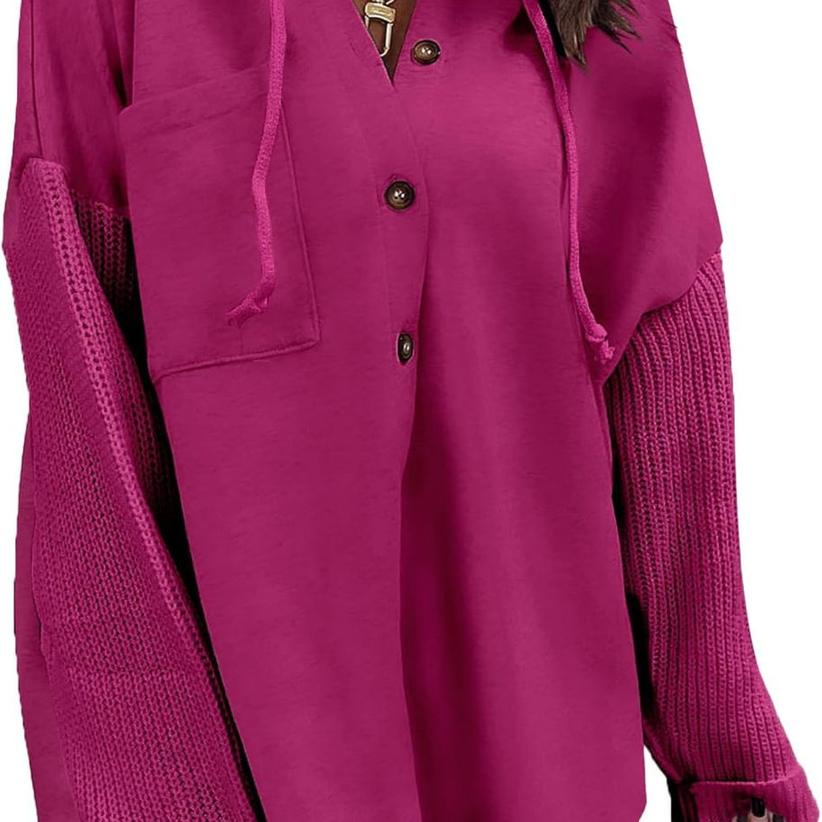 Características: sudaderas con capucha y sudaderas de moda para mujer, sudaderas de gran tamaño, chaqueta con capucha con botones, ligera, camisetas de manga larga de punto, bolsillo en el pecho, ajuste holgado.