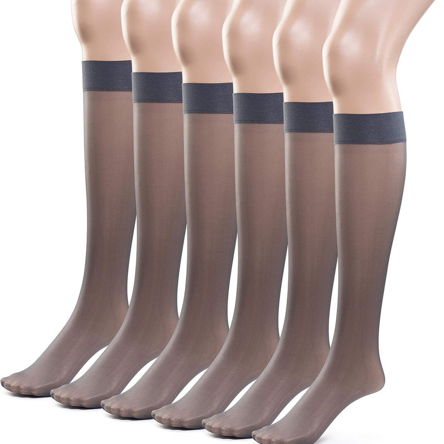 Silky Toes Medias altas hasta la rodilla transparentes para mujer, 6 pares de c