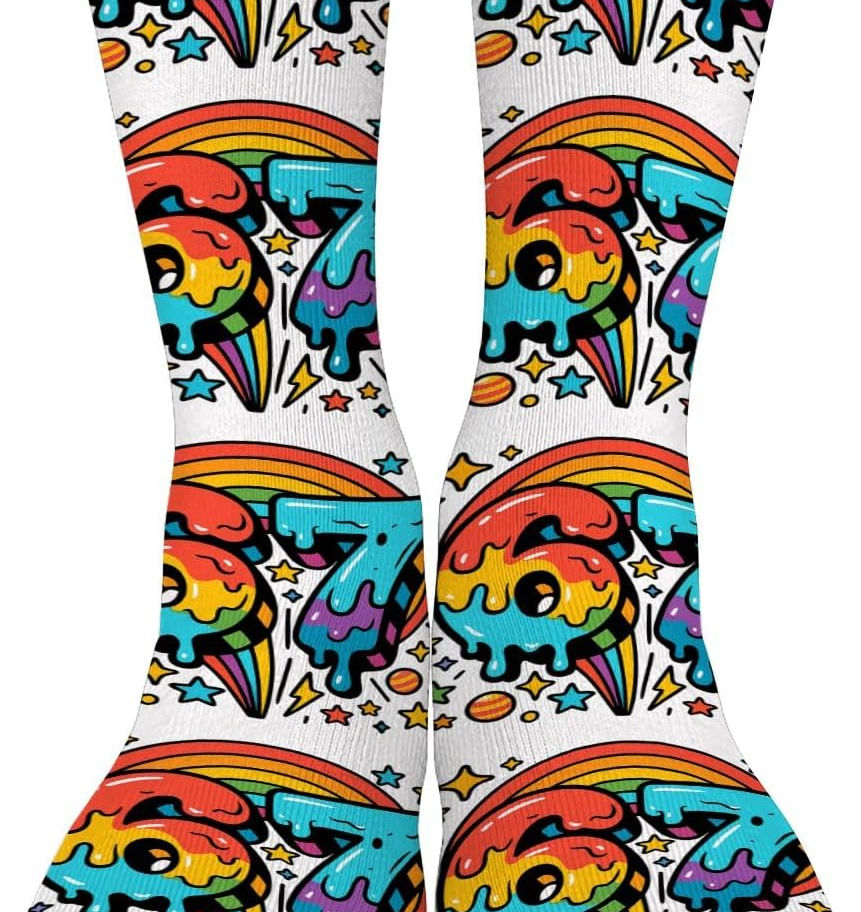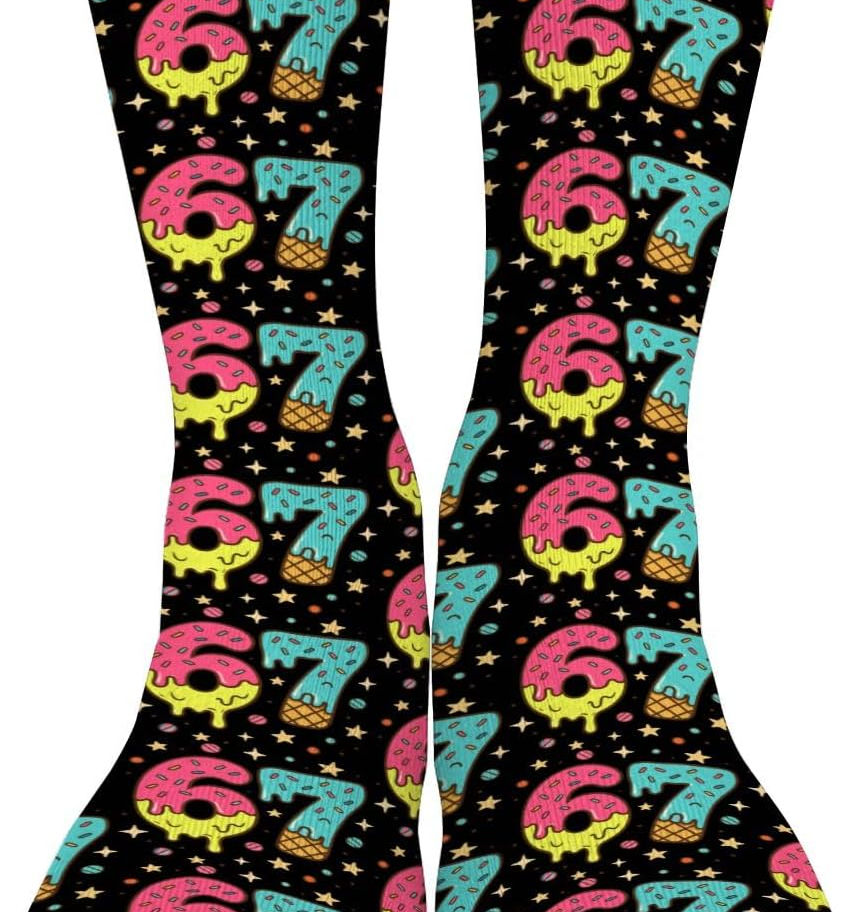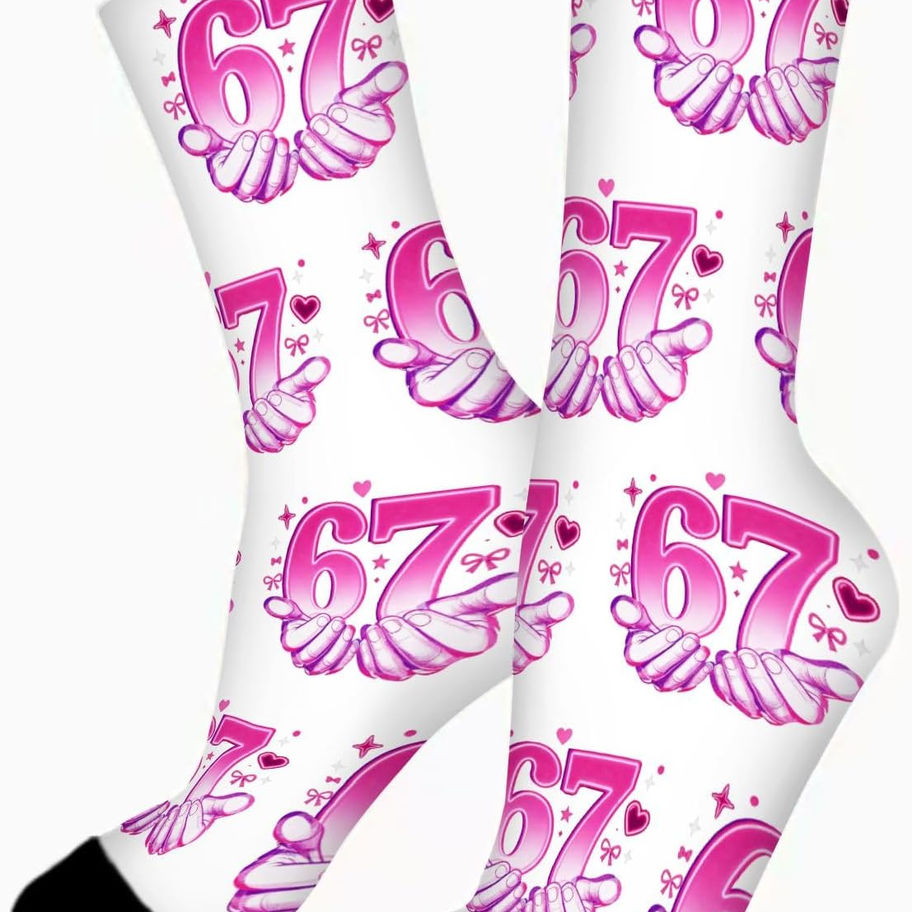 Six Seven 6 7 Fun Graphic Crew Socks - Calcetines coloridos de dona crema de hi