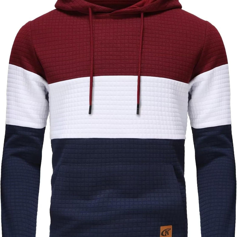 Sudadera de manga larga para hombre, con capucha con cordón, de jacquard a cuad