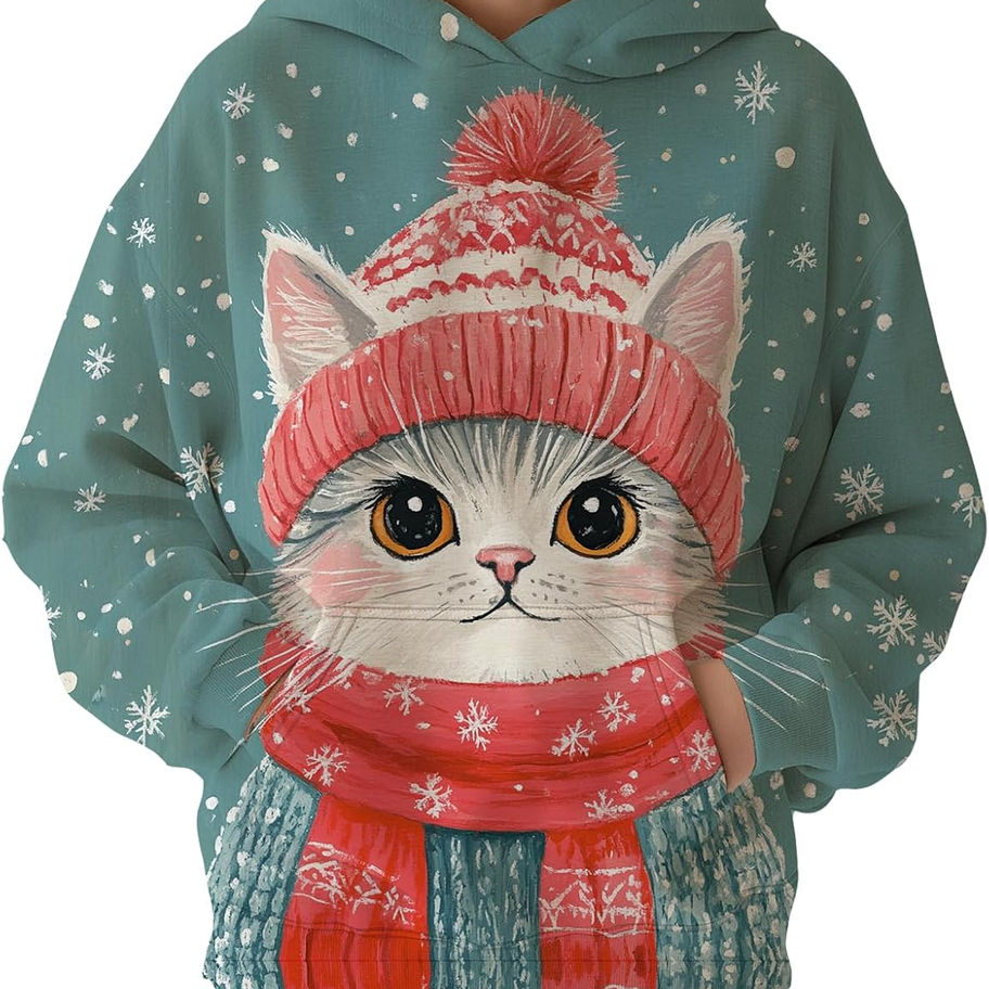 Sudaderas con capucha para mujer, diseño de gato, de manga larga, con estampado
