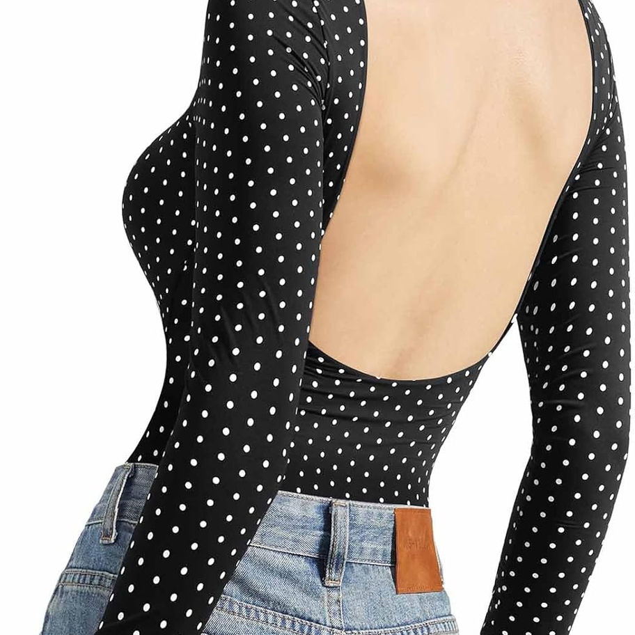 SUUKSESS Body de manga larga Y2k sin espalda para mujer, con doble forro, espal