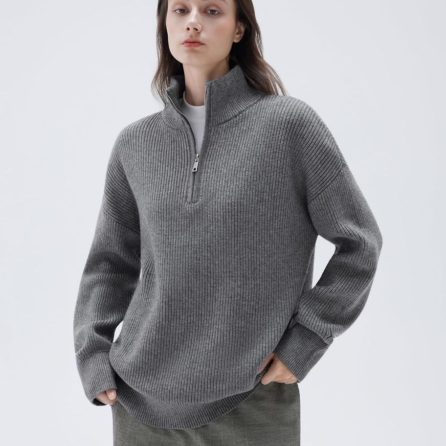 SUUKSESS Suéter de cachemira de gran tamaño con cremallera de un cuarto, suéter