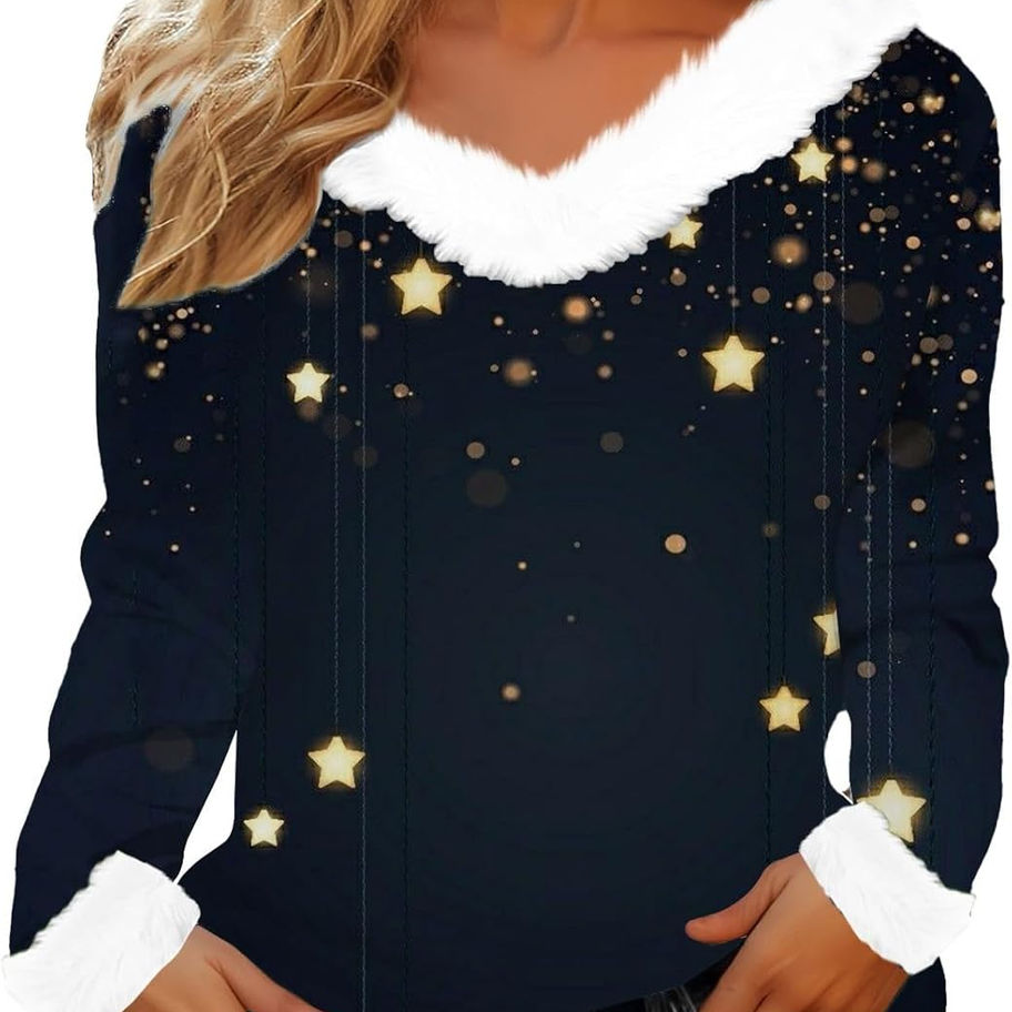 Suéter de Navidad para mujer – Suéter de Navidad con cuello en V y ribete de pi