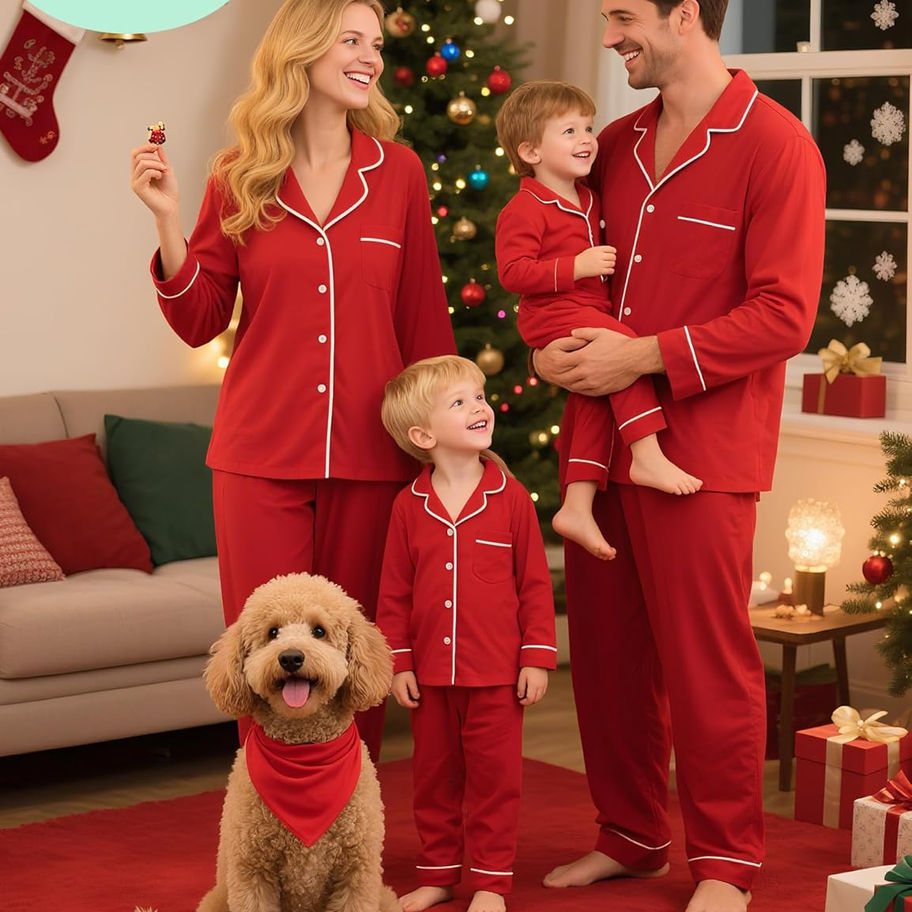 Juegos de pijamas abotonados: las pijamas a juego clásicas para parejas de Navidad consisten en una cómoda camiseta de manga larga con botones, cuello con muescas y un bolsillo en el pecho que aporta un detalle sofisticado; los pantalones de largo completo tienen un ajuste perfecto con cintura elástica, manteniéndote cómodo sin apretar demasiado.