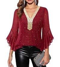 Características: elegante cuello en V de lentejuelas brillantes, manga con volantes 3/4 semitransparentes, construcción de doble capa, purpurina brillante, ajuste holgado, excelente elasticidad, antiarrugas, cómodo y transpirable. Las camisetas Timeson para mujer están diseñadas para brillar elegantemente sin parecer llamativas. Con un hermoso brillo sutil que no se frota ni se desprende, estas camisetas son perfectas para llevar todo el día, lo que te permite brillar sin dejar un rastro de brillo.