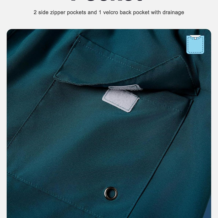 Bolsillos con cremallera y bolsillo seguro: 2 bolsillos con cremallera que puede almacenar artículos fáciles de caer, bolsillo trasero con orificio de drenaje no solo almacena tus pertenencias, sino que también acelera el flujo de agua para un secado rápido. Además, los trajes de baño tienen un forro de bolsillo seguro.