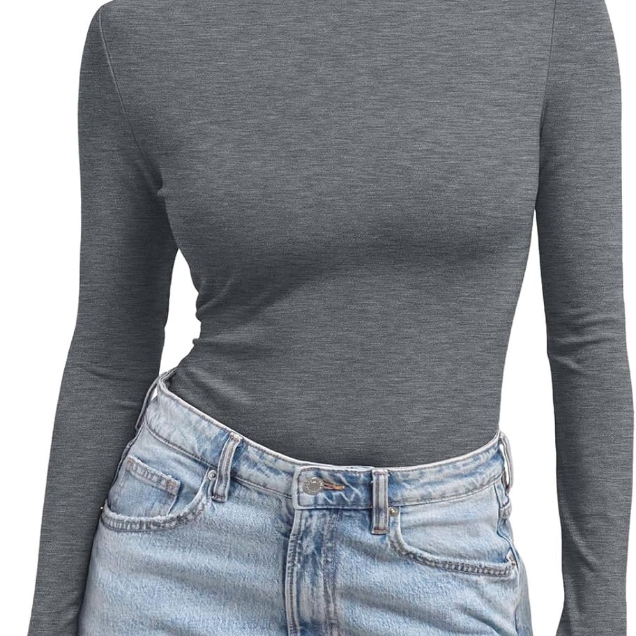 Características: cómodas camisas de manga larga, cuello alto falso, ajustadas y ligeras, parte superior de capa ligera, silueta ajustada y color sólido que combinan con todo.
