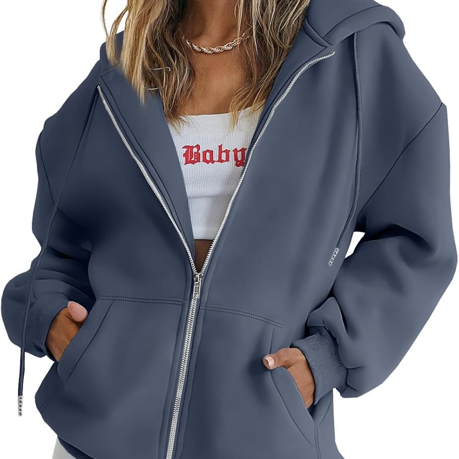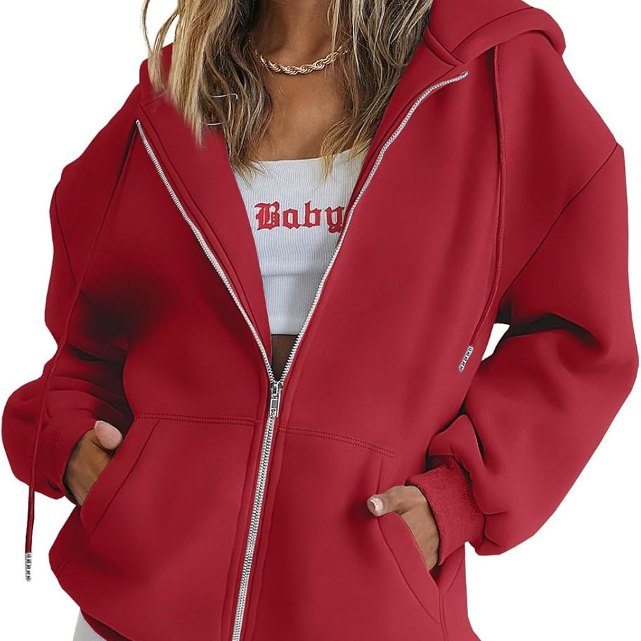 Trendy Queen - Sudaderas con capucha y cremallera para mujer, sudaderas de gran