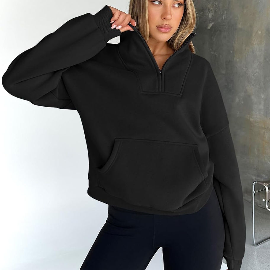 Trendy Queen - Sudaderas con medio cierrey capucha de gran tamaño, comoda, extr