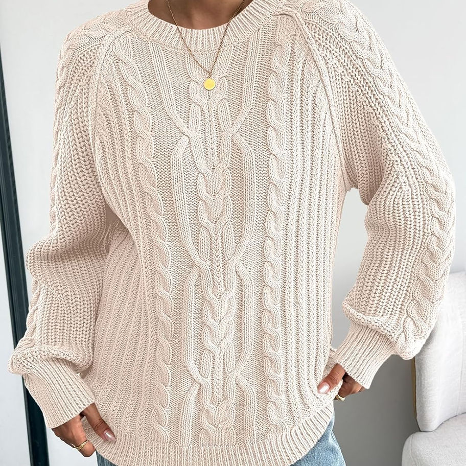 Trendy Queen Suéteres de otoño de gran tamaño con cuello redondo de punto trenz