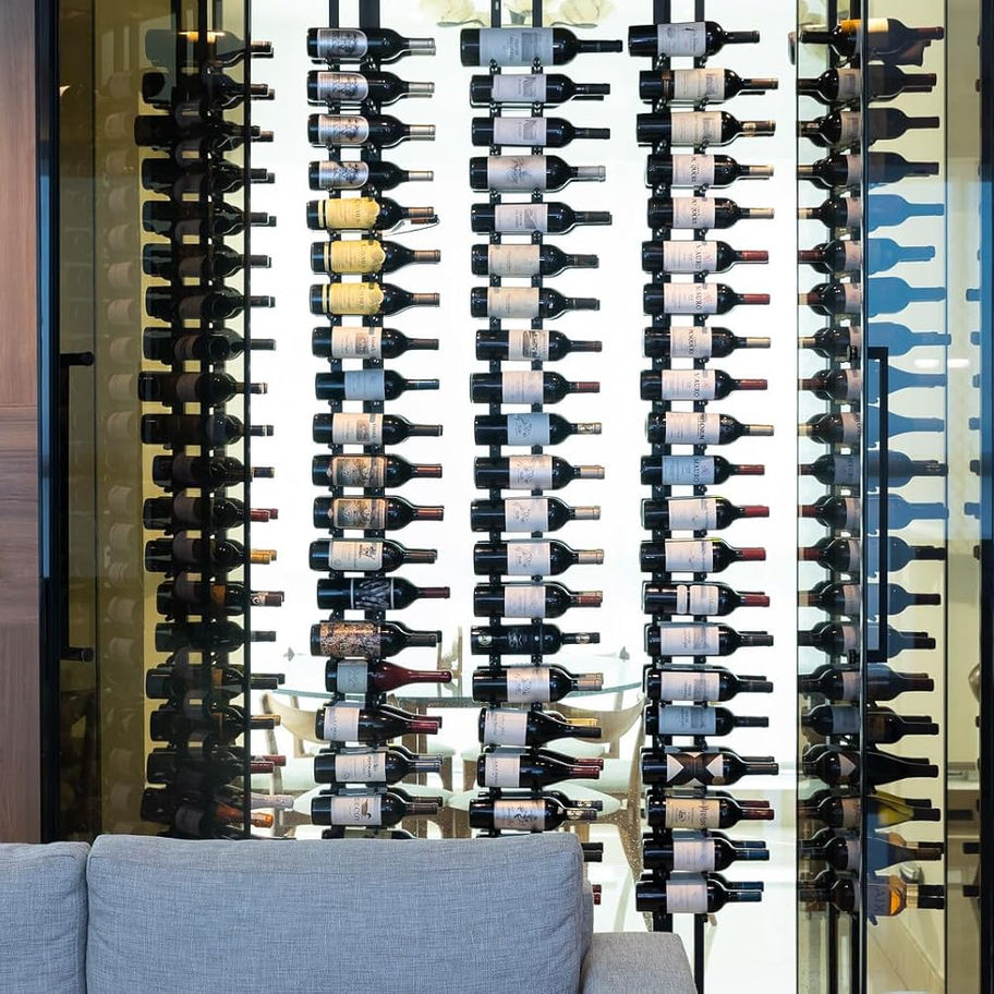 Perfecto para entusiastas del vino y profesionales del diseño: Ya sea que sea un entusiasta del vino que busca una manera elegante de almacenar su colección, un diseñador que busca la solución de exhibición perfecta o un contratista que busca un sistema fácil de instalar para sus clientes, el estante de vino Ultra Floor-to-Ceiling es la opción ideal.