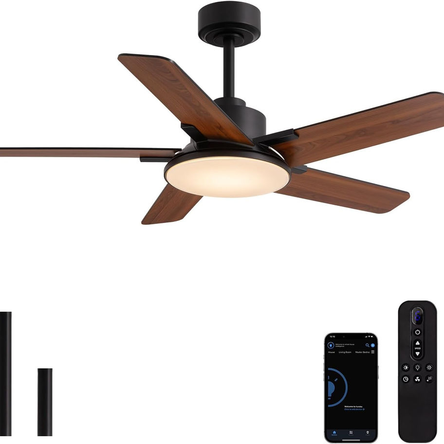 Iluminación personalizable: este moderno ventilador de techo viene con una luz LED regulable de 22 W, puede establecer el ambiente ideal para trabajar, cenar o incluso dormir con diferentes opciones de brillo (10 a 100), y 3 temperaturas de color (de 3000 K amarillo cálido a 6500 K blanco frío).