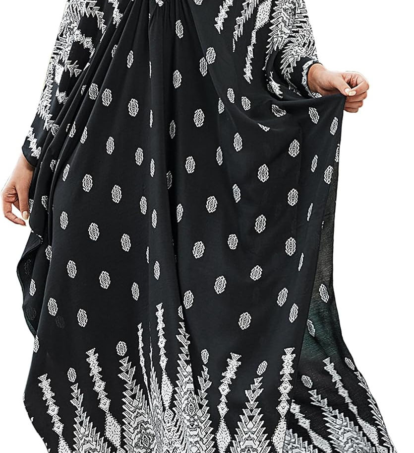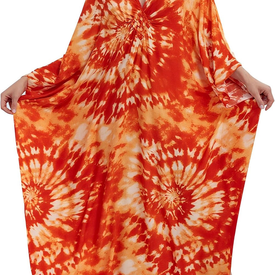 Vestidos caftán de talla extragrande: los vestidos caftán para mujer se adaptan a las tallas S, M, L, XL, 2XL de EE. UU., con un busto de hasta 57 pulgadas y una longitud de 53.1 pulgadas.