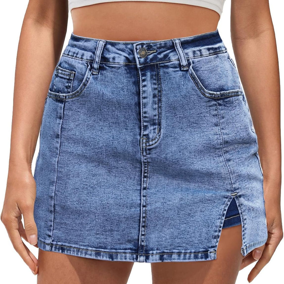 Vetinee Falda pantalón de mezclilla para mujer, de cintura alta, con abertura,