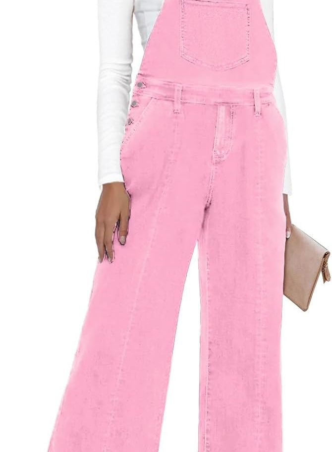 Los overoles holgados de cintura alta para mujer vienen con correas ajustables, cierre de botones laterales y detalles especiales de dobladillo enrollable.