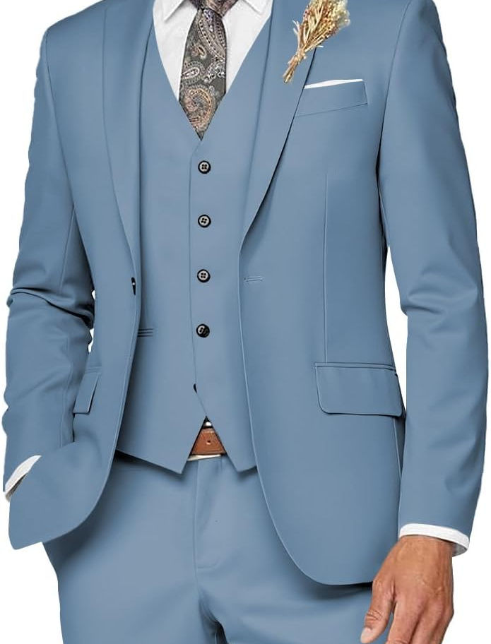 Wangyue Traje de 3 piezas para hombre, traje formal de negocios, boda, novio, g