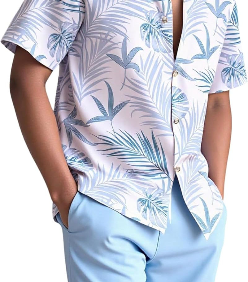 WDIRARA Conjunto hawaiano a juego para hombre, conjunto de 2 piezas para verano
