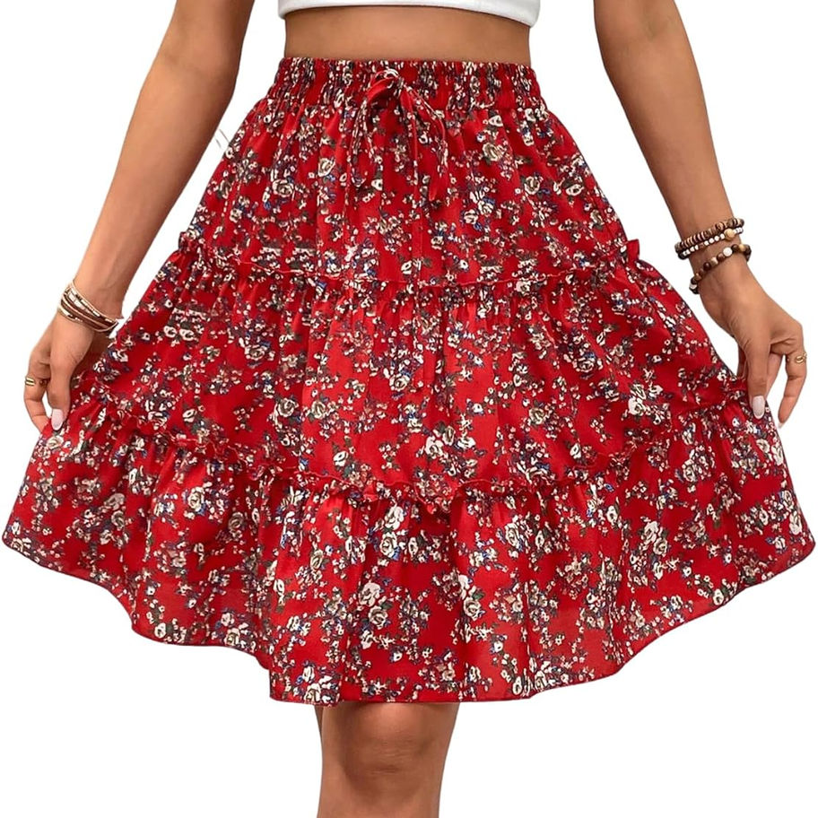 WDIRARA Falda elástica de cintura alta con volantes y estampado floral para muj