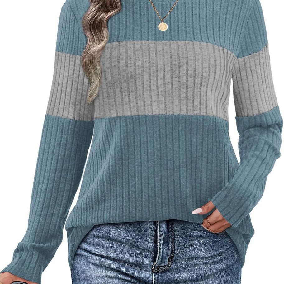 WIHOLL Suéteres de moda para mujer, camisetas de manga larga con bloques de col