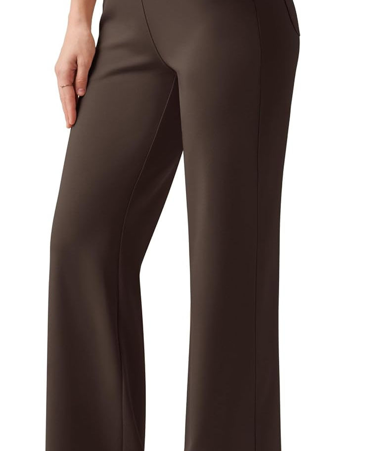 Willit Pantalones de vestir de pierna ancha para mujer, de cintura alta, elásti