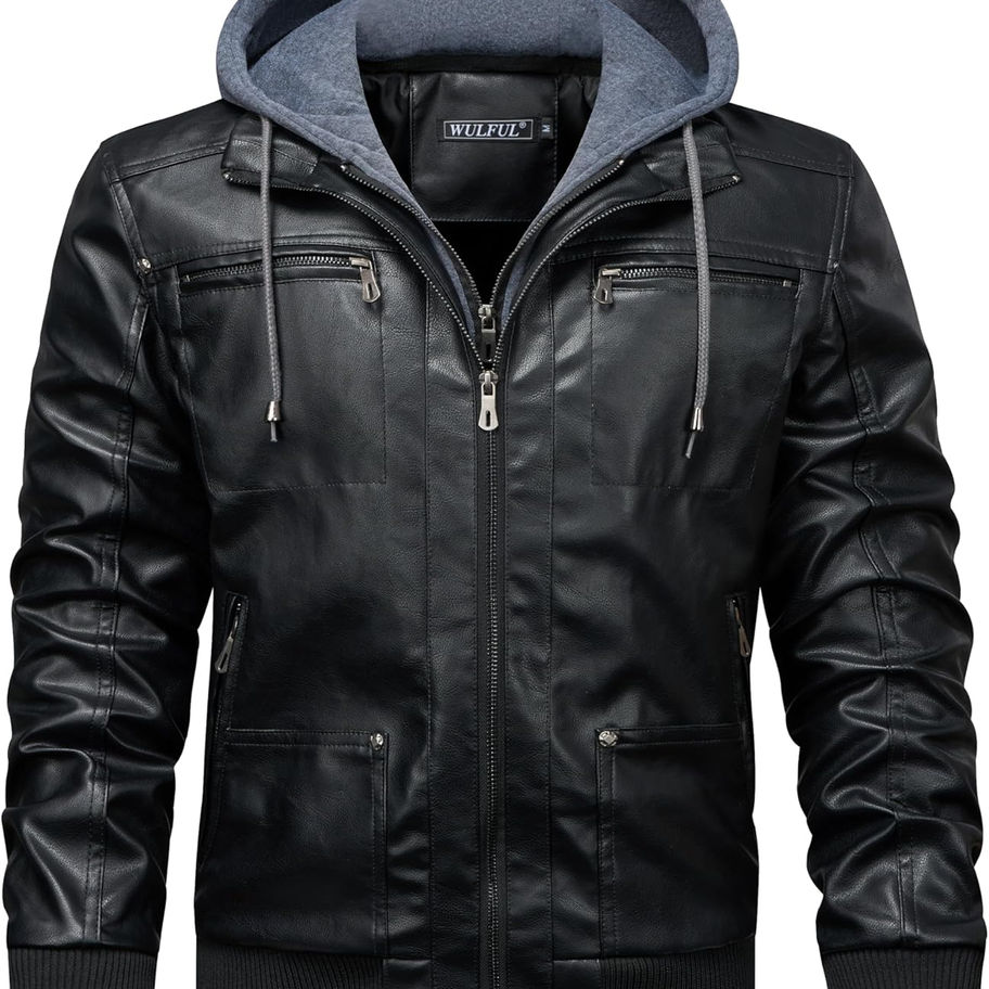 WULFUL Chaquetas de cuero para hombre, chaqueta de piel sintética para hombre,